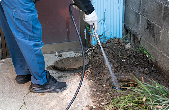 排水管の中に汚れや異物が溜まると、悪臭や詰まり・水漏れなどのトラブルを引き起こすことも。そこで高圧洗浄機などを使用して、排水管をしっかりと洗浄。必要に応じてカメラで中の様子を確認しながら作業を行います。