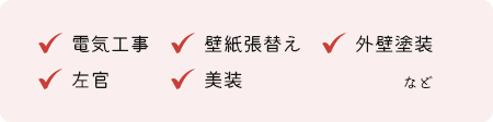 当社では、協力業者との連携により、下記のような住まいに関するさまざまな工事にも対応が可能です。